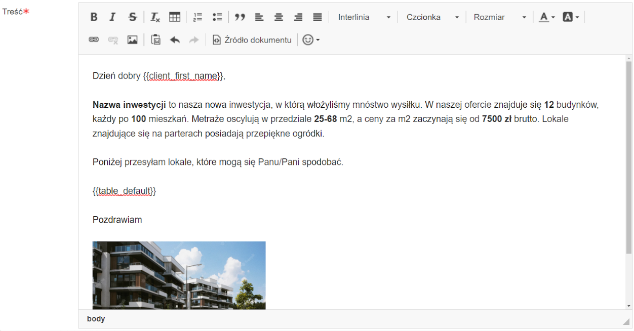 - Treść - w tym polu należy uzupełnić treść wiadomości, która będzie wysyłana do klientów