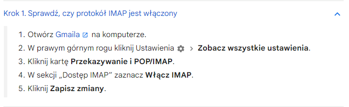 Częstym problemem przy synchronizacji poczty z systemem jest wyłączony protokół IMAP. Bez jego włączenia system nie zsynchronizuje się pomyślnie z Państwa skrzynką.